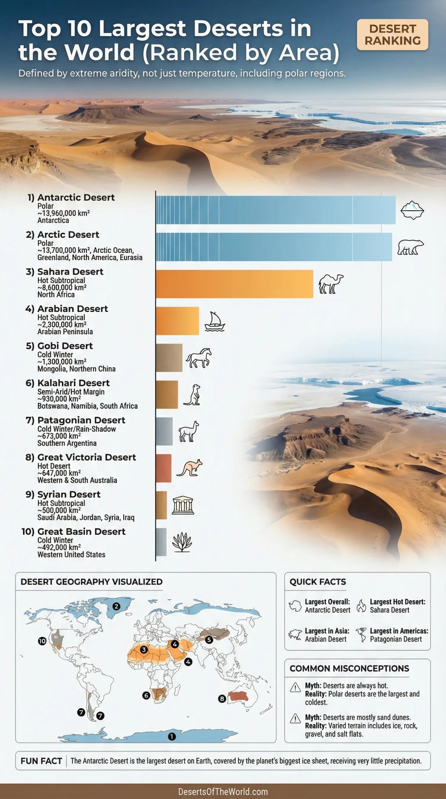 - Largest Desert Overall: Antarctic Desert
